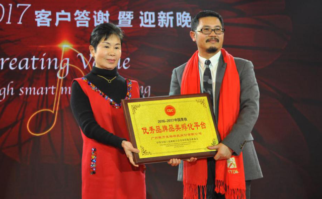 特別值得一提的是,馬婭會(huì)長(zhǎng)在發(fā)言完后現(xiàn)場(chǎng)為棟方股份特別頒發(fā)了“中國(guó)美妝優(yōu)秀品牌品類孵化平臺(tái)”的獎(jiǎng)牌,高度肯定了棟方股份在這方面的杰出貢獻(xiàn)。