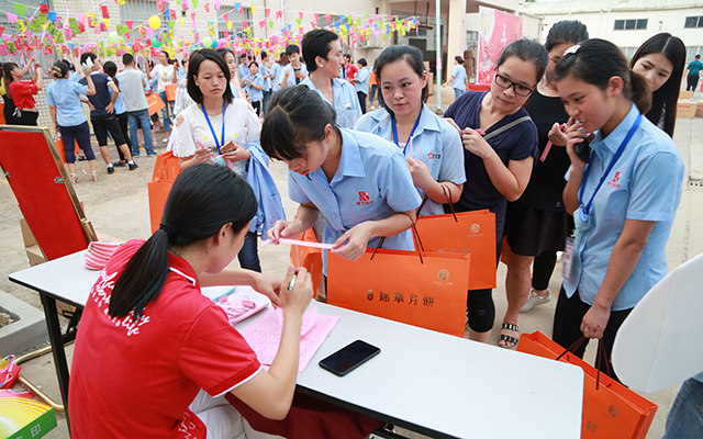 頒獎結(jié)束后,是大家翹首以盼的月餅派發(fā)環(huán)節(jié),憑票兌換,秩序井然,現(xiàn)場一片溫情、歡喜洋溢。