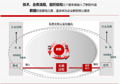 兩化融合,即工業(yè)化與信息化的深度融合,是一項國家戰(zhàn)略決策。通過在企業(yè)內部推行并建立一套管理體系,形成企業(yè)長期推動兩化融合的內在機制。輔助企業(yè)理清業(yè)務模式和業(yè)務流程,消除內部管理阻力;以制度創(chuàng)新保障技術創(chuàng)新、商業(yè)模式創(chuàng)新,形成良性循環(huán)。在操作層面體現(xiàn)為不斷推進數據、技術、業(yè)務流程、組織結構四個基本要素互動創(chuàng)新和持續(xù)優(yōu)化的過程!