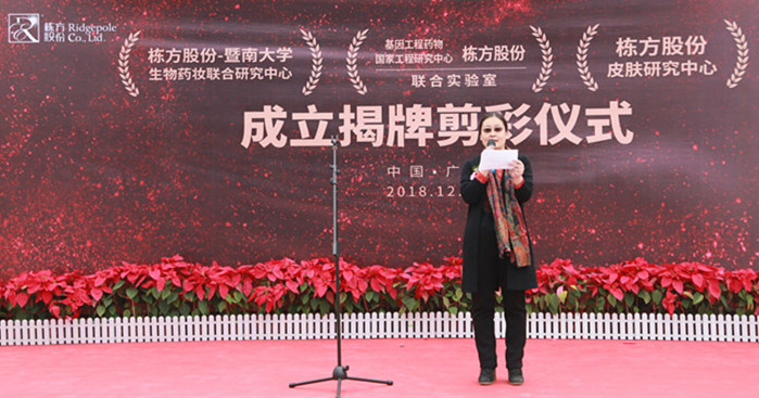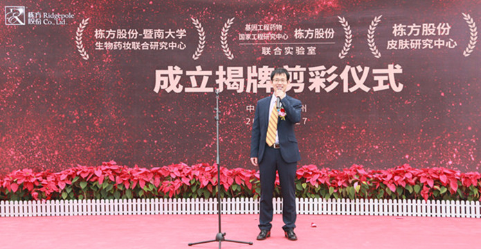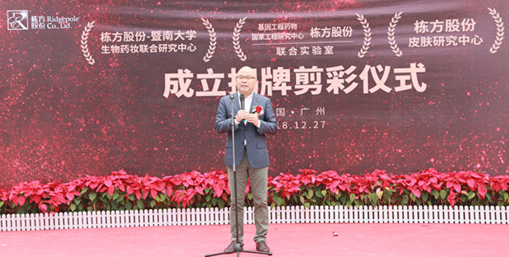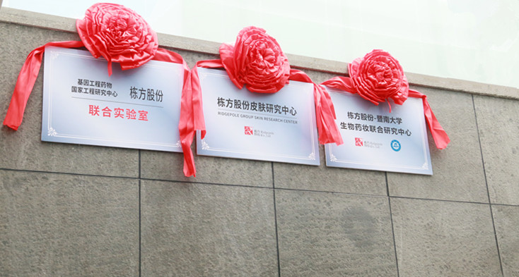 2018年12月27日上午,棟方股份技術(shù)合作揭牌剪彩活動(dòng)在公司技術(shù)研究大樓一樓廣場(chǎng)隆重舉行,正式成立了“棟方股份--暨南大學(xué)生物藥妝聯(lián)合研究中心”、“棟方股份--基因工程藥物國(guó)家工程研究中心聯(lián)合實(shí)驗(yàn)室”、“棟方股份皮膚研究中心”三大研究中心。此次生物藥妝技術(shù)重磅合作,在棟方技術(shù)創(chuàng)新發(fā)展史上具有重大里程碑意義。