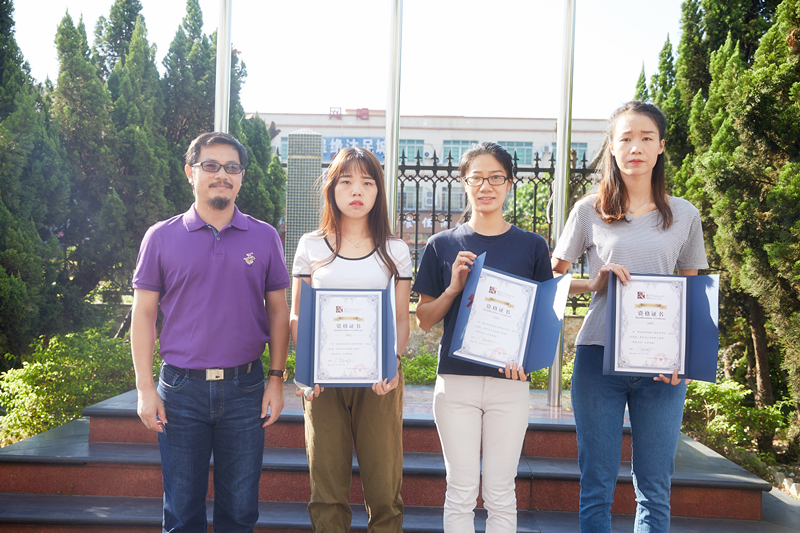 現(xiàn)場評審內(nèi)容分為四大部分:專業(yè)知識、市場趨勢、配方制作、樣品制作;經(jīng)過層層考核與評選,最終技術(shù)中心許恩恩、江君如、單莉成功由助理工程師晉級初級工程師,唐董親自為他們頒發(fā)證書。