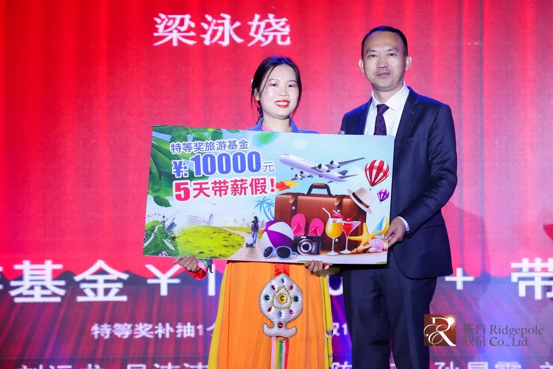 今年,公司為員工精心準(zhǔn)備的獎品除現(xiàn)金紅包、紀(jì)念金鈔外,還有華為手機以及萬元家庭游豪華大獎。
