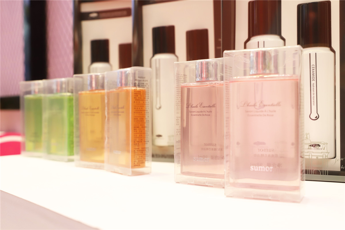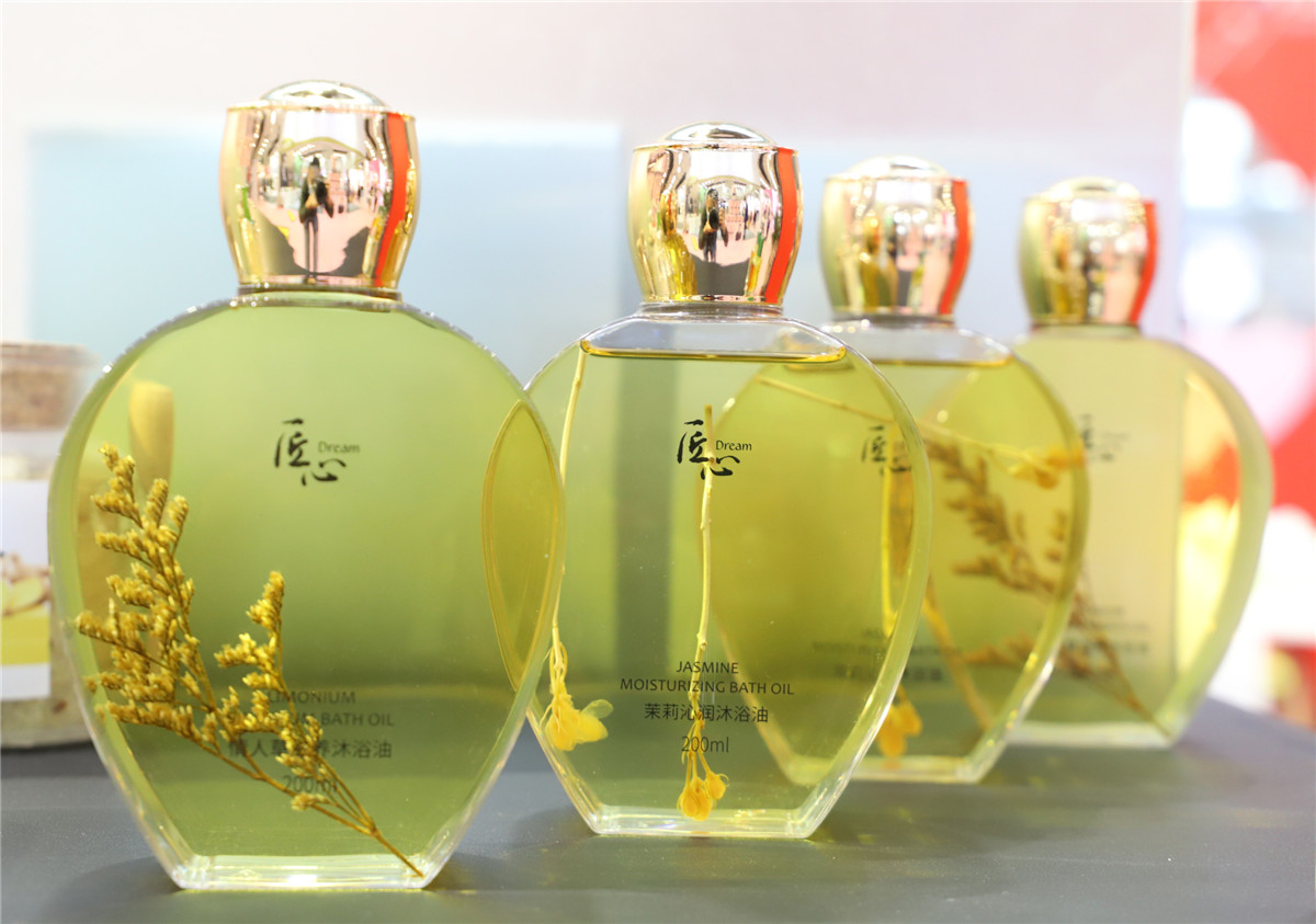 創(chuàng)意升級(jí),科技加碼,棟方股份館內(nèi)陳列眾多創(chuàng)意星品。輕醫(yī)美、植物有機(jī)、精油、花瓣添加、彩妝、香水等全部美妝品類產(chǎn)品展現(xiàn)眼前,向每一位駐足參觀的客戶,展示著棟方股份技術(shù)與藝術(shù)完美結(jié)合的創(chuàng)新成果。